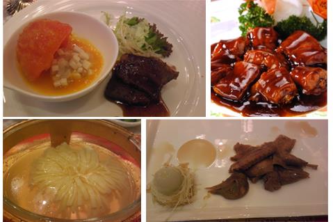 3月20日,乐乎楼集团总经理於延琴率领餐饮团队一行5人参加了此次美食节交流活动。在交流活动上,我们有幸看到了黄才根师傅制作的“菊花豆腐”。将一段长约10厘米的玉子豆腐做成菊花盛开的样子,每一片花瓣粗细相当,长短统一,散落有致,形色饱满。做成这样一朵浑然天成的菊花豆腐,没有一定的“内功”是办不到的。“红烧鮰鱼”更是黄师傅的拿手绝活,他所烧制的鮰鱼采用本帮菜的自来芡烧法,色泽红亮、鱼肉鲜嫩、咸中带甜、鲜嫩不腻,是一味不可多得的美味佳肴。